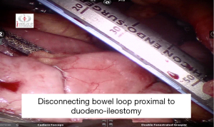 One of the most technically demanding bariatric procedures to perform is biliopancreatic diversion with duodenal switch (BPD/DS). It involves formation of a gastric sleeve in which pylorus is kept intact and sleeve is divided beyond pylorus. 2nd step involves bypassing majority of small bowel and distal ileum is anastamosed to gastric sleeve (duodenum) in a Roux-en-Y fashion. The first robotic BPD/DS was performed in October, 2000 soon after the introduction of the da VinciTM system (31).